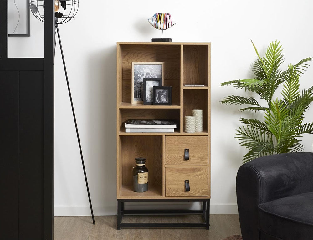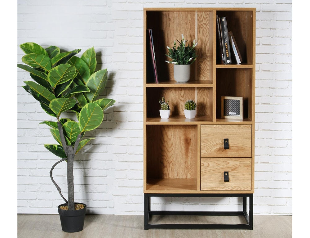 Η βιβλιοθήκη Abbott από τη Home Deco Factory είναι η ιδανική προσθήκη στο χώρο σας. Ο μοντέρνος σχεδιασμός και η ανθεκτική της κατασκεή θα φιλοξενήσει με μεγάλη άνεση τα βιβλία και τα διακοσμητικά σας. Φτιάξε τις δικές σας συνθέσεις με διακοσμητικά, γλαστράκια, βιβλία και ότι άλλο επιθυμείτε και δώστε μια ξεχωριστή νότα στο χώρο σας. Διαθέτει 5 ράφια και 2 συρτάρια. Είναι κατασκευασμένη από MDF και η βάση της από μέταλλο.