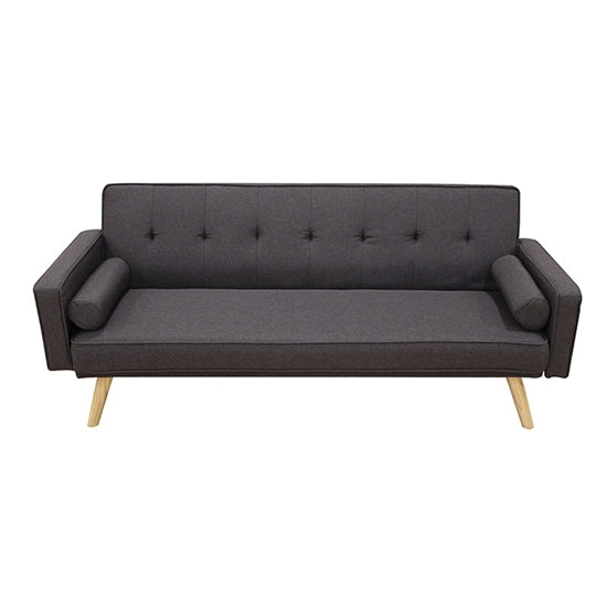 τριθέσιος καναπές/κρεβάτι με ύφασμα σε grey χρώμα και διακοσμητικά μαξιλάρια .Συνδυάζει κομψότητα, πρακτικότητα και άνεση, αποτελώντας την ιδανική επιλογή για κάθε σπίτι. Με μία κίνηση μετατρέπεται εύκολα σε άνετο κρεβάτι, εξασφαλίζοντας πρακτική λύση για φιλοξενία επισκεπτών.