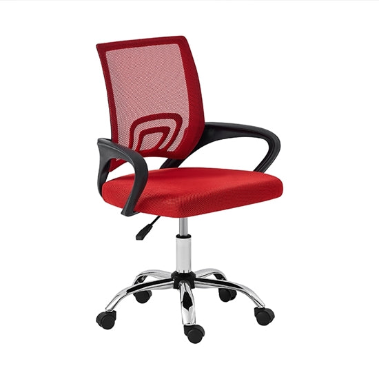 K1 πολυθρόνα γραφείου με ιδιαίτερο σχεδιασμό στην πλάτη και στρογγυλεμένα μπράτσα ώστε να ξεκουράζουν σε πολύωρη χρήση. Η πλάτη είναι ενδεδυμένη με Κόκκινο mesh ύφασμα για να αποτρέπει την εφίδρωση. Το κάθισμα διαθέτει μηχανισμό αυξομείωσης του ύψους με αμορτισέρ και πόδι χρωμίου για απόλυτη αντοχή στον χρόνο.