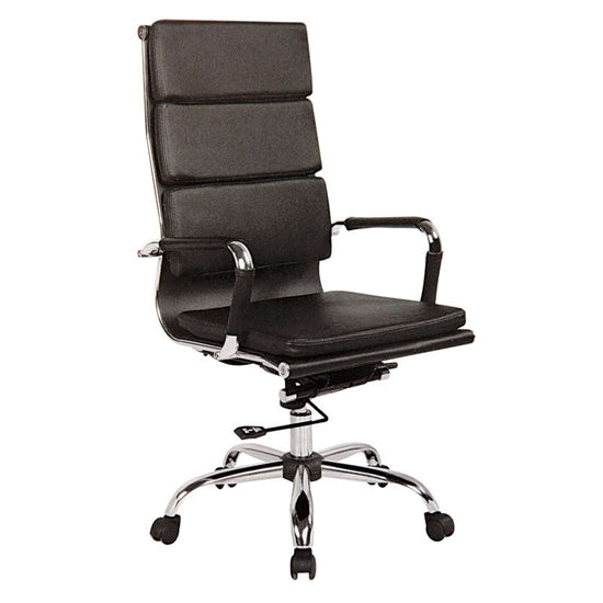 M6 πολυθρόνα διευθυντική, μοντέρνα με εξελιγμένο μηχανισμό, ψηλή πλάτη και ρυθμιζόμενο ύψος. Το κάθισμα και τα μπράτσα είναι ενδεδυμένα σε μαύρο χρώμα PU και πόδι χρωμίου για μεγαλύτερη αντοχή. Διαθέτει κάθισμα συνεργασίας για να την συνδυάσετε άψογα.